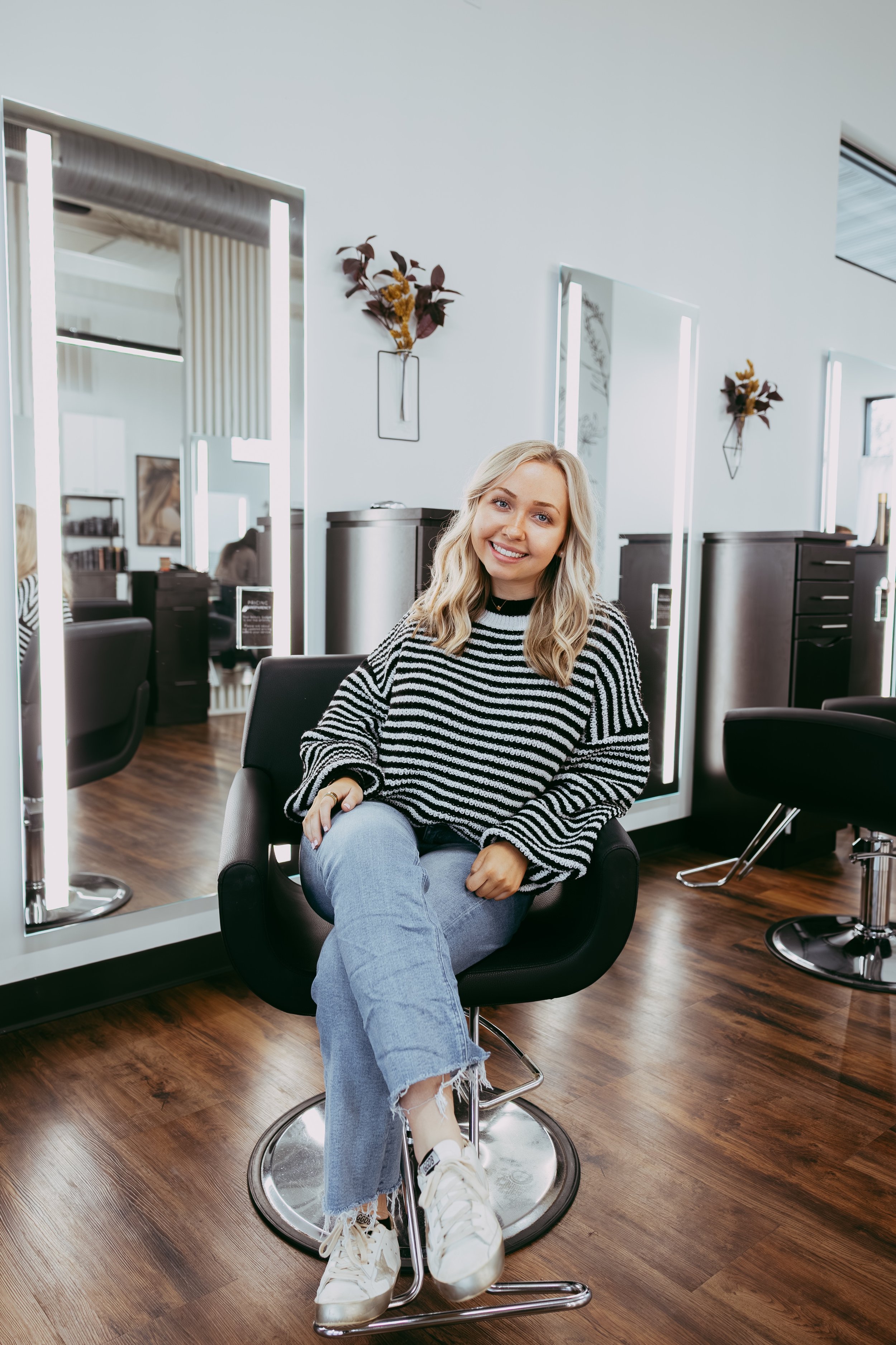 Her strong work ethic and drive come naturally - she grew up playing three sports and brings that same competitive, all-in energy to the salon every day. She’s the kind of person who gives 110% in everything she does, and we’re lucky to have her on the team.